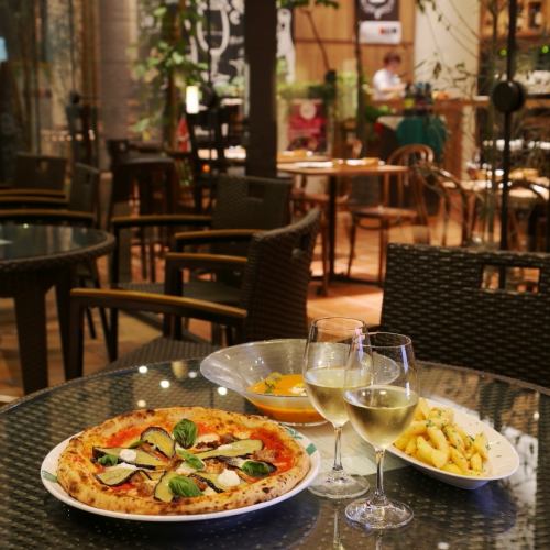 盡情享用經過40小時緩慢發酵的那不勒斯風味烤箱烤披薩!內裡勁道,外皮酥脆!番茄醬充分展現了其甜味和鮮味,義大利直送的水牛起司更是美味無比!請務必品嚐新鮮出爐的美味!